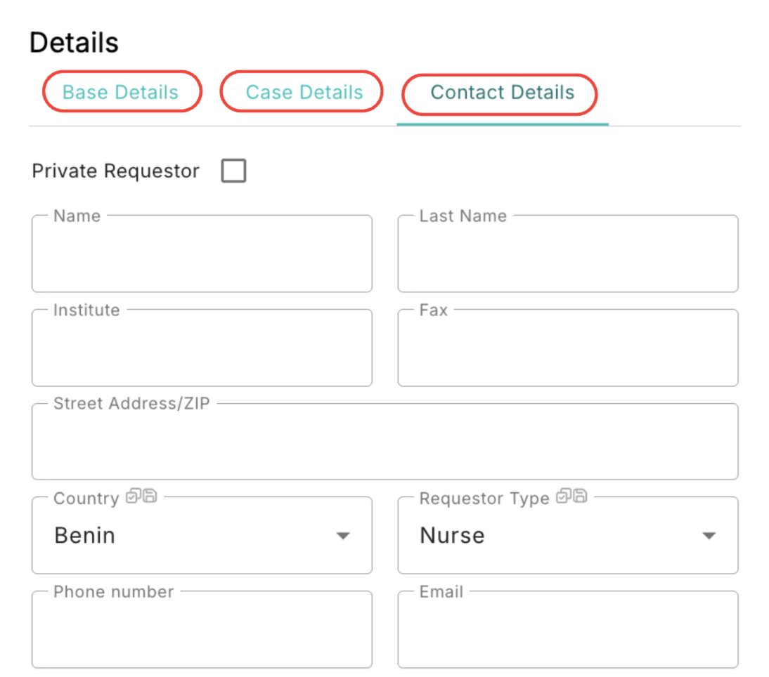 To complete the Details section of a medical inquiry, navigate through each tab and fill out all mandatory and required for completion fields. This ensures the inquiry can be properly saved and completed.