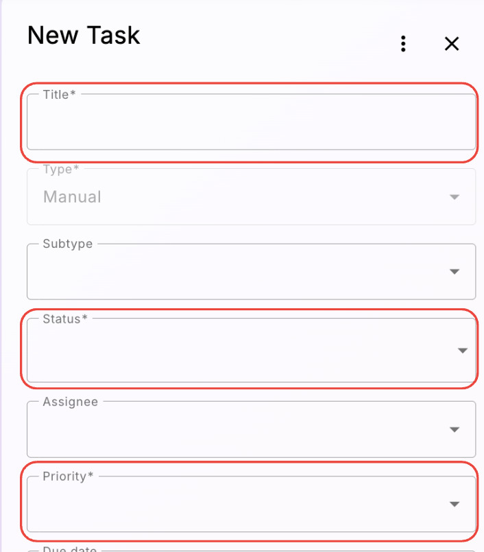 Click the “⋮” (More actions) button in the task form to access the actions available for the selected task type.