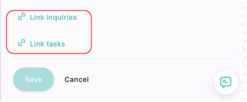 To link tasks or inquiries to a task, click the “Link inquiries” or “Link tasks” button and select the desired inquiries or tasks from the list.