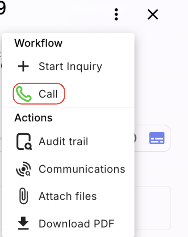 - Call action - initiates a call to the client directly from the system.