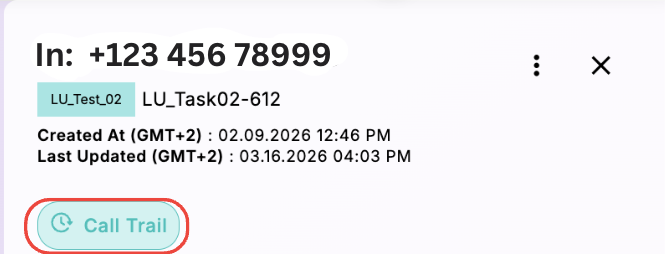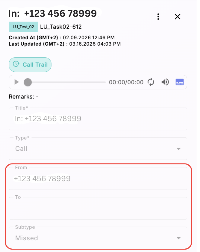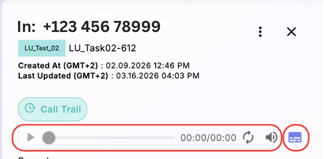 - Call recording and Transcription - users can listen to the call recording and review the call transcription directly within the task.
