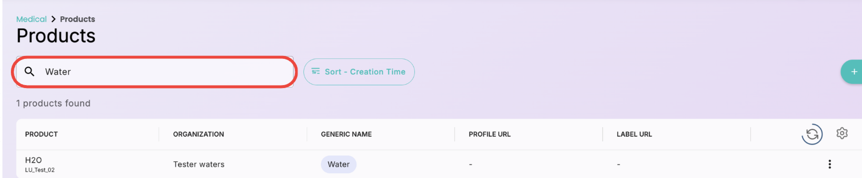 How To Search Products Products can be searched by entering the partial or full Product/Organization/Generic Name of the desired product in the search field, as shown below. Products Module Introduction